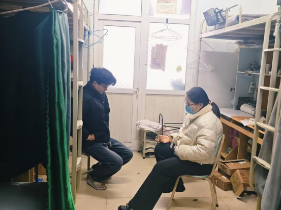 在走访过程中,老师们与学生们亲切交谈,详细询问了假期生活和新学期的学习计划,提醒同学注意天气变化。针对大三学生,辅导员认真解答了部分同学对于专业学习和未来职业道路选择上的疑惑,缓解他们的焦虑情绪,帮助他们更好地进行职业发展规划。